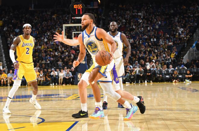 次节比赛,文森特连中三分引领8-2攻势反超5分,库里三分回敬,双方随后接连冲击内线交替领先。戴维斯、穆迪、克内克特与希尔德接连三分命中,范德比尔特内线命中,勇士内外开花打出一波10-0攻势,勇士单节30-24净胜6分,上半场结束勇士62-55领先湖人。前两节比赛,库里14分与穆迪13分,文森特16分4助攻。